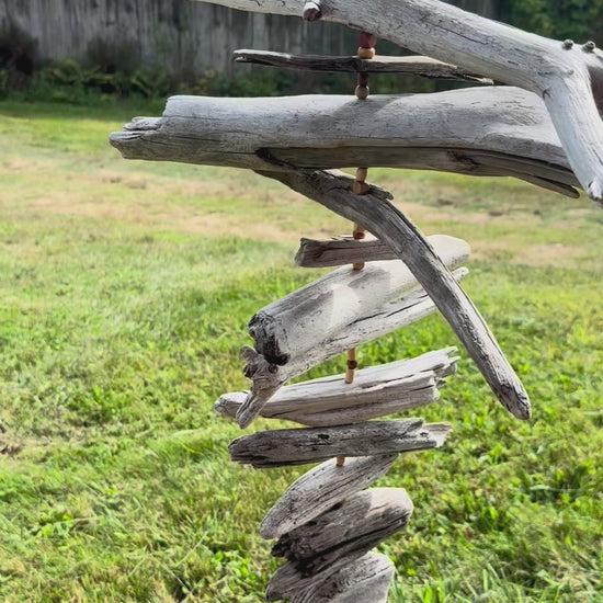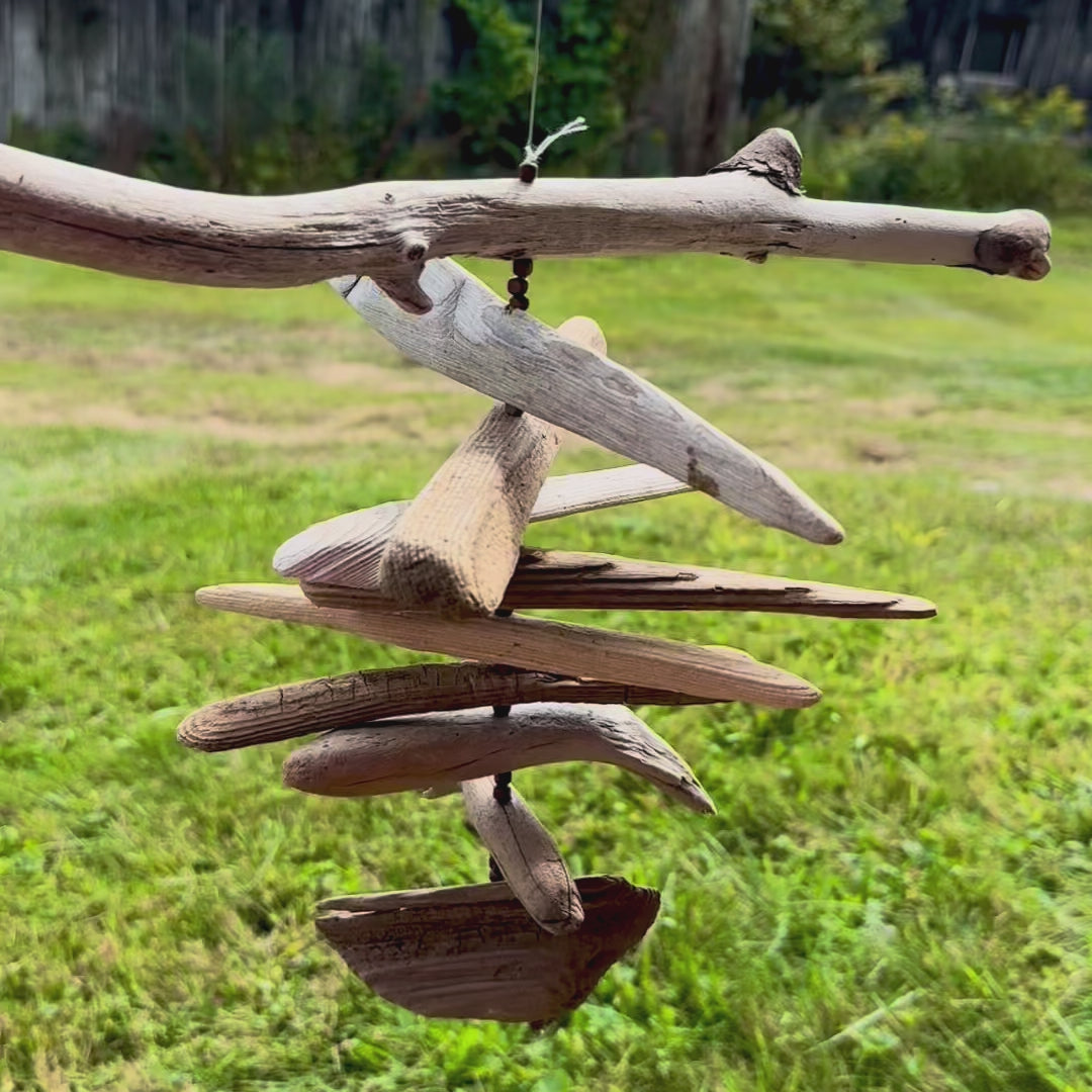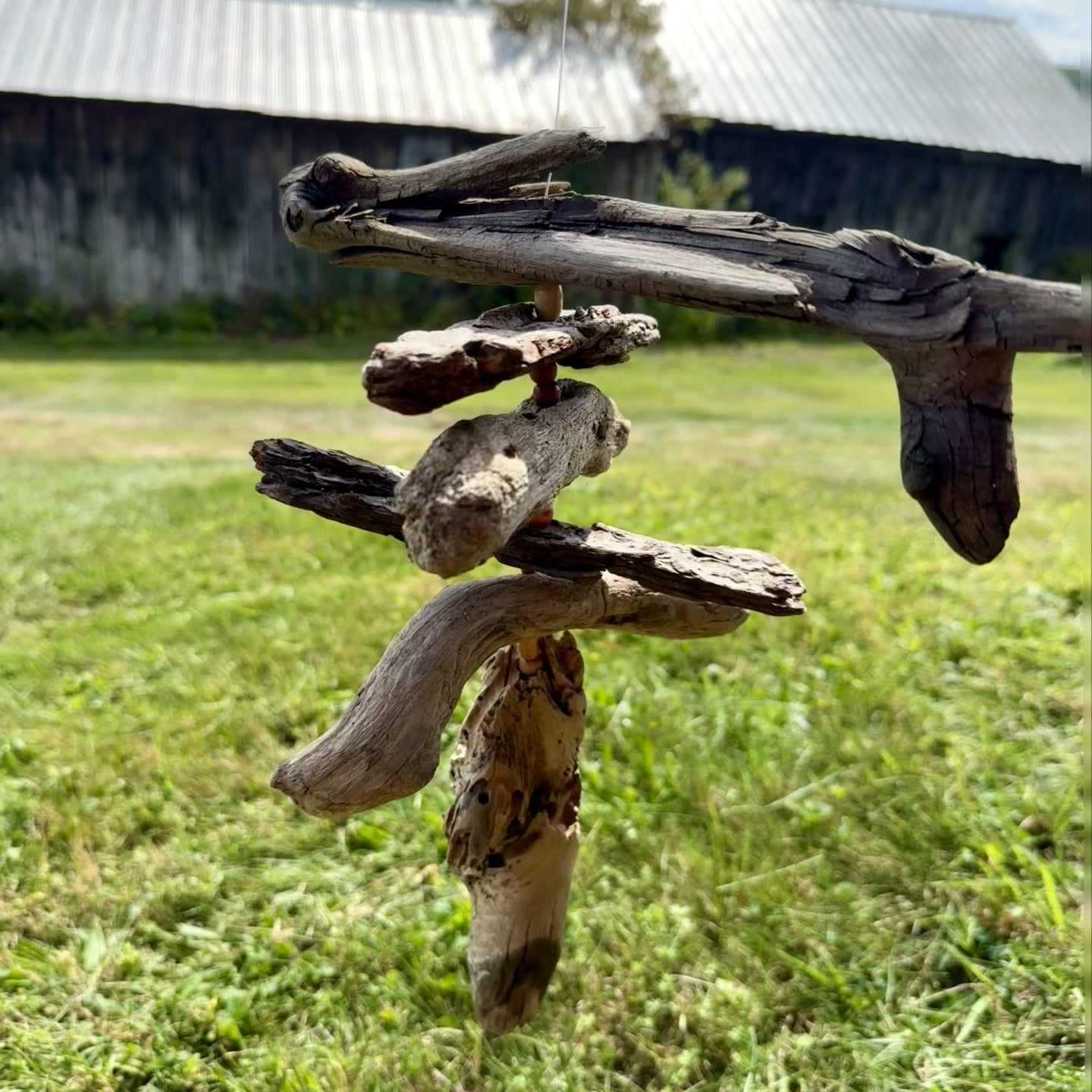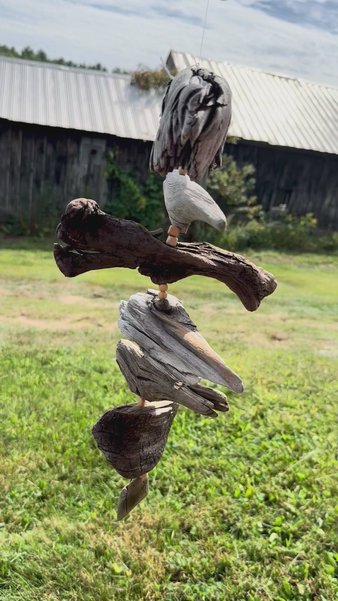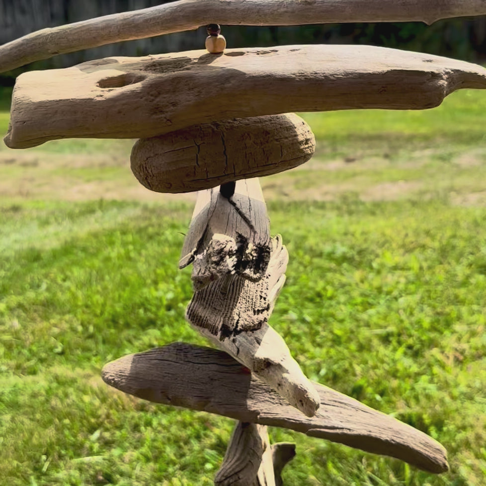 Enjoy these wind catchers made with independently balanced and movable driftwood pieces.