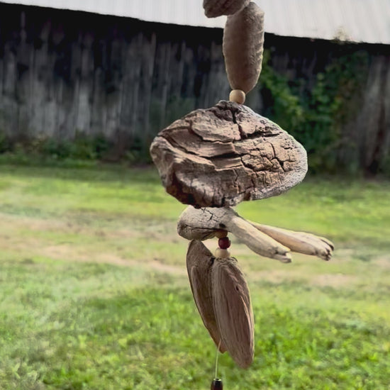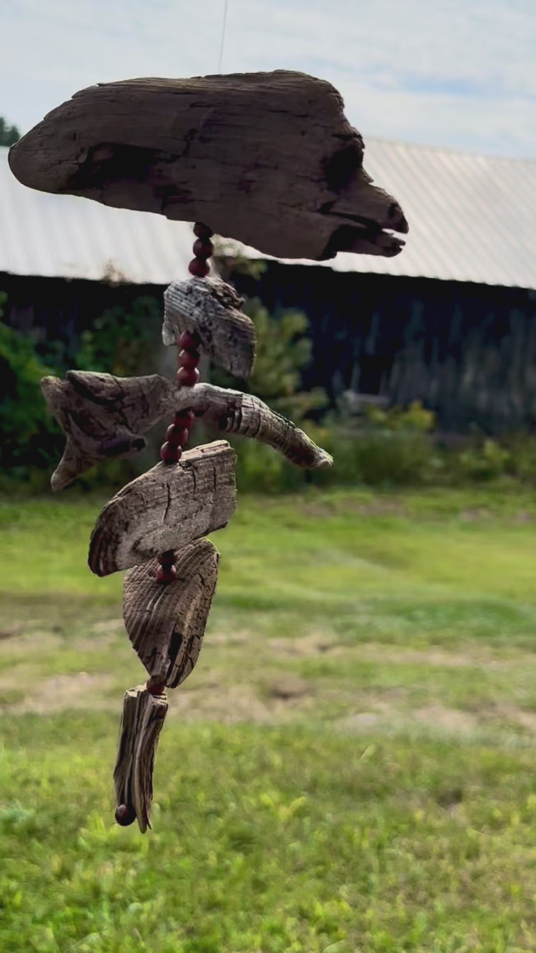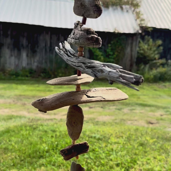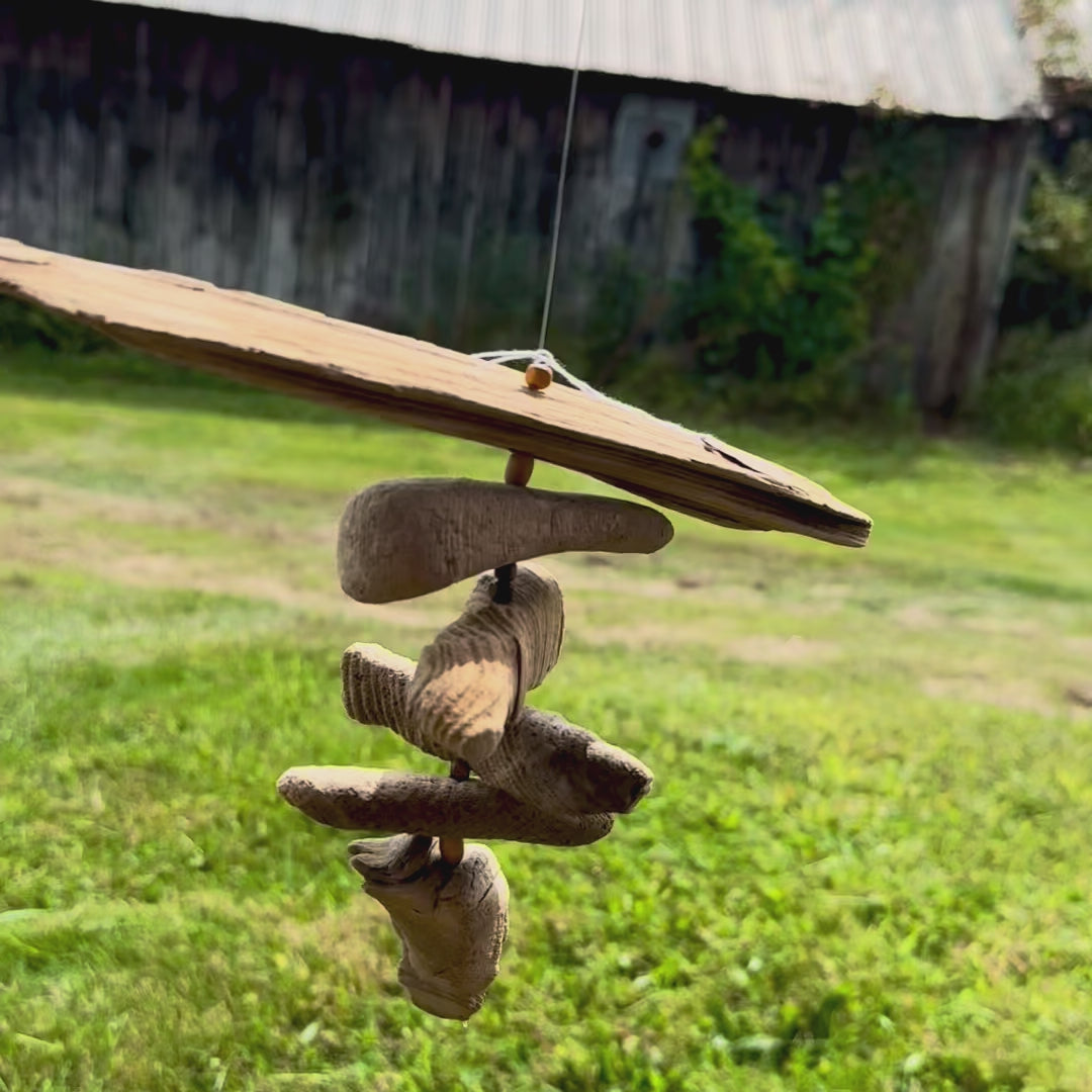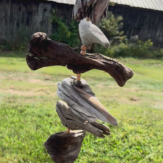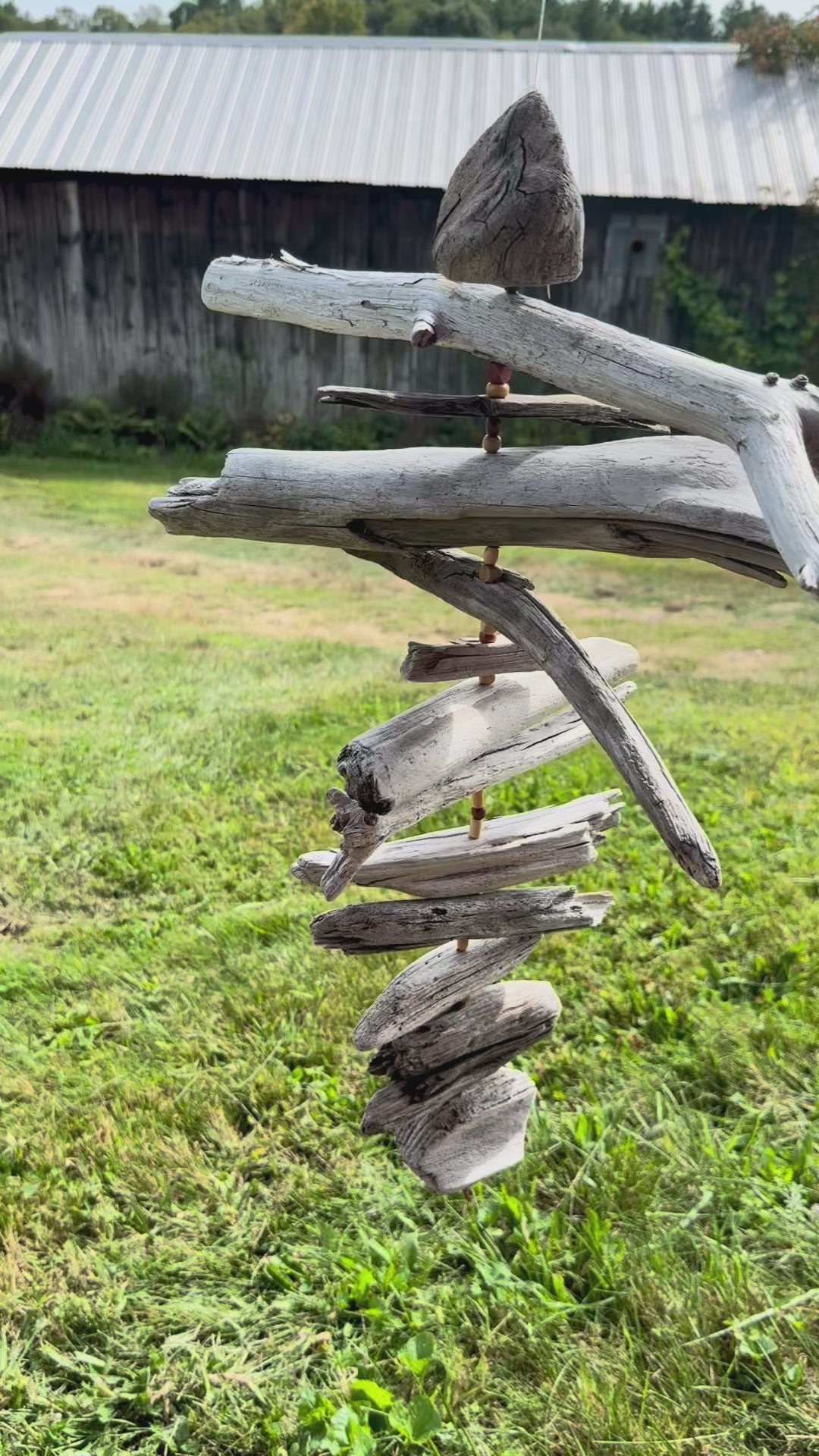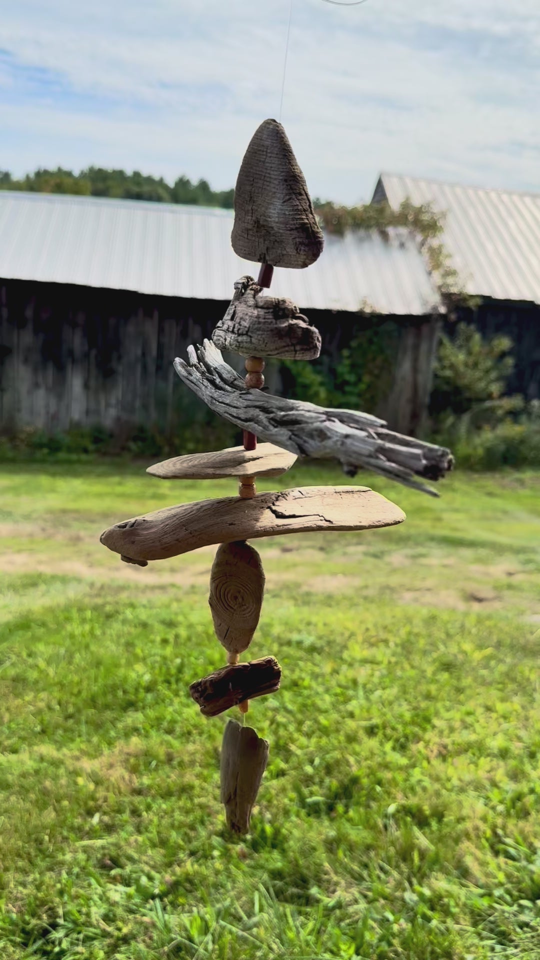 Enjoy these wind catchers made with independently balanced and movable driftwood pieces.